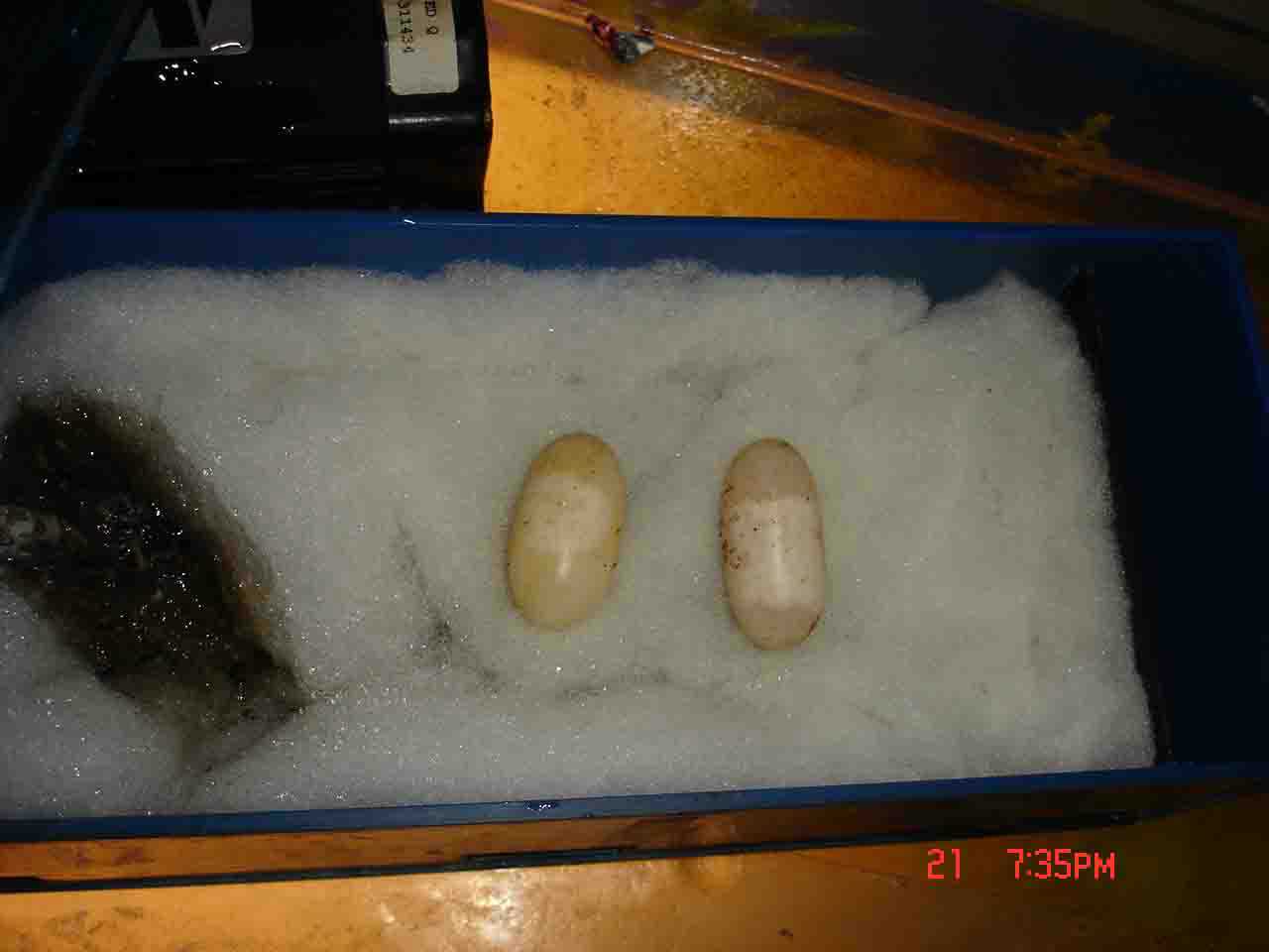 初步观察4个黄缘蛋蛋均保存完好,6个黄喉蛋蛋有3个已破,准备丢弃,其余3个状态虽不大乐观,但仍将坚持孵化。