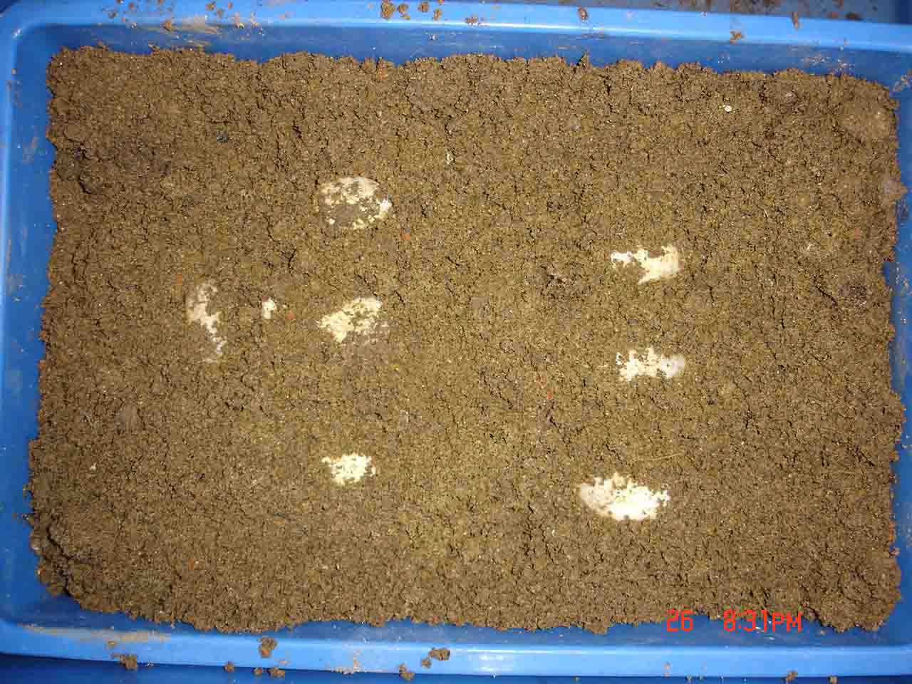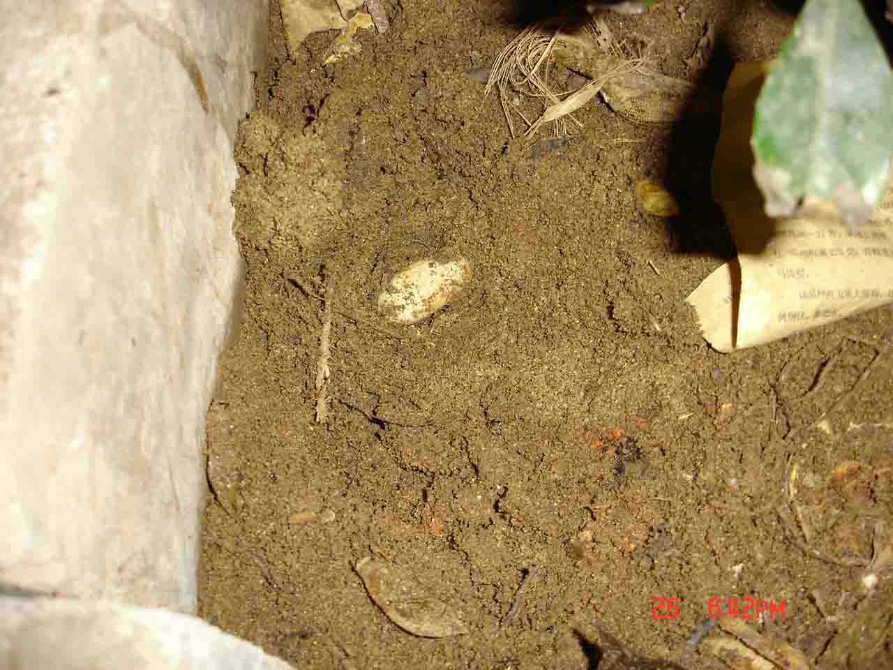 看到蛋蛋一时兴起,于是决定继续开展发掘工作。果不其然,几分钟后又在相隔25公分处发现一窝,有6个,蛋型教小,推断应该是上月下旬放“生”的黄喉所生,但可惜的素有3个蛋蛋已破碎,估计是黄喉下完蛋蛋后黄缘又来挖坑下蛋压坏的(剩下的3个蛋蛋也不大乐观)。因为相邻不到5公分处又发现一窝缘缘蛋,有3个。