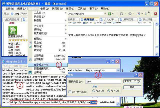 3、用记事本的“搜索”功能,搜索媒体文件的扩展名“.WMV”,找到的地址就是媒体文件在网上的地址。