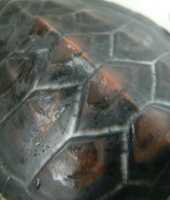 如题,龟甲持续长出这些白痕已经大概两周多了,一直潜在水底,不过食欲不变,就是腹甲感觉变凹了一些,不知道是不是缺少什么食物物质元素什么的,可同养的另一只完全没有白痕,也比较胖和饱满