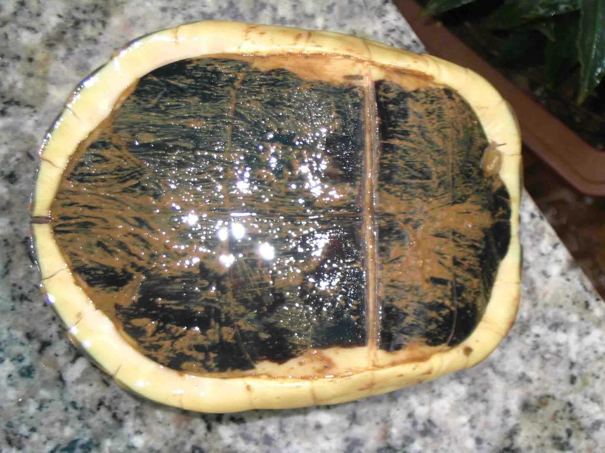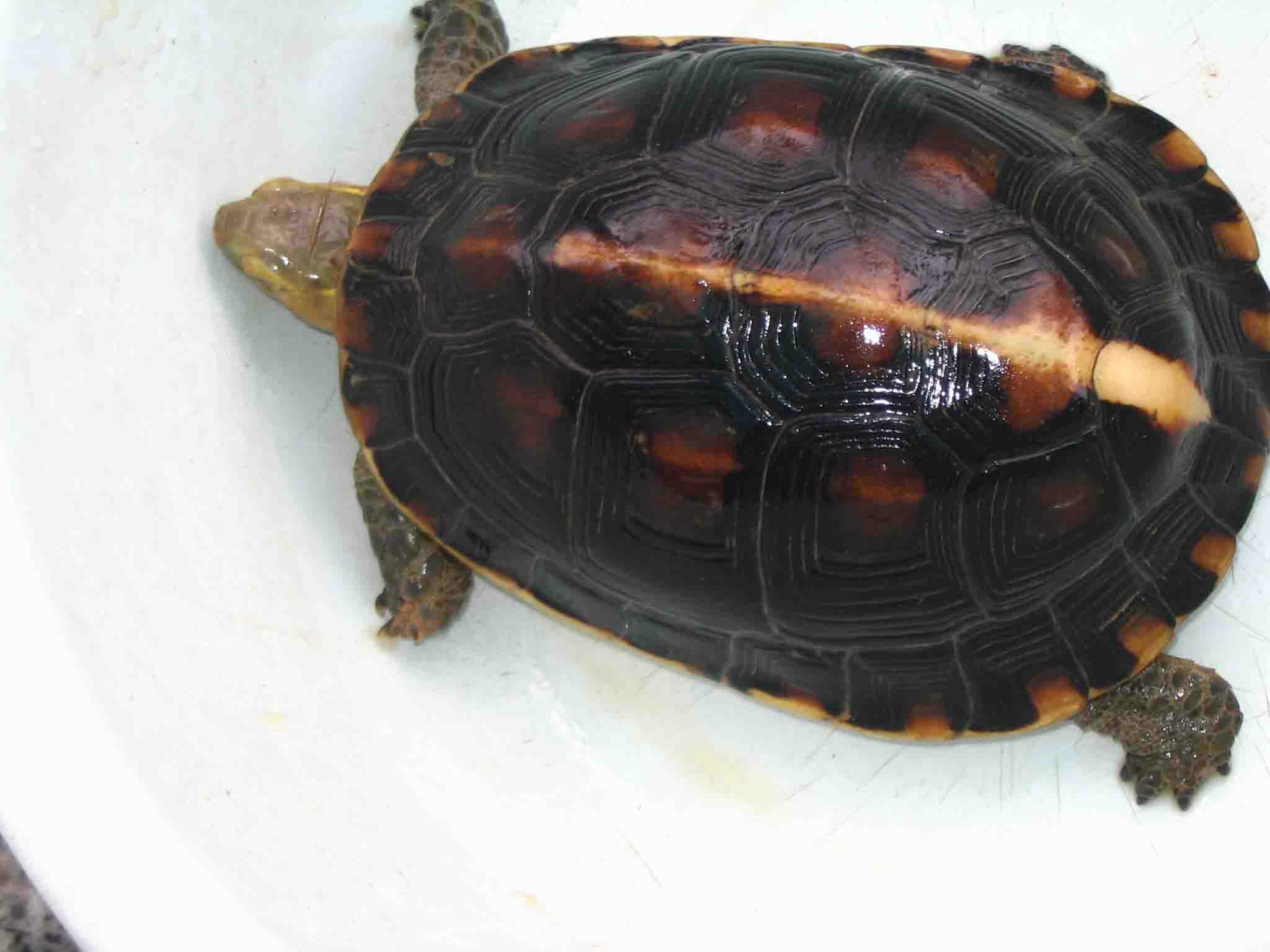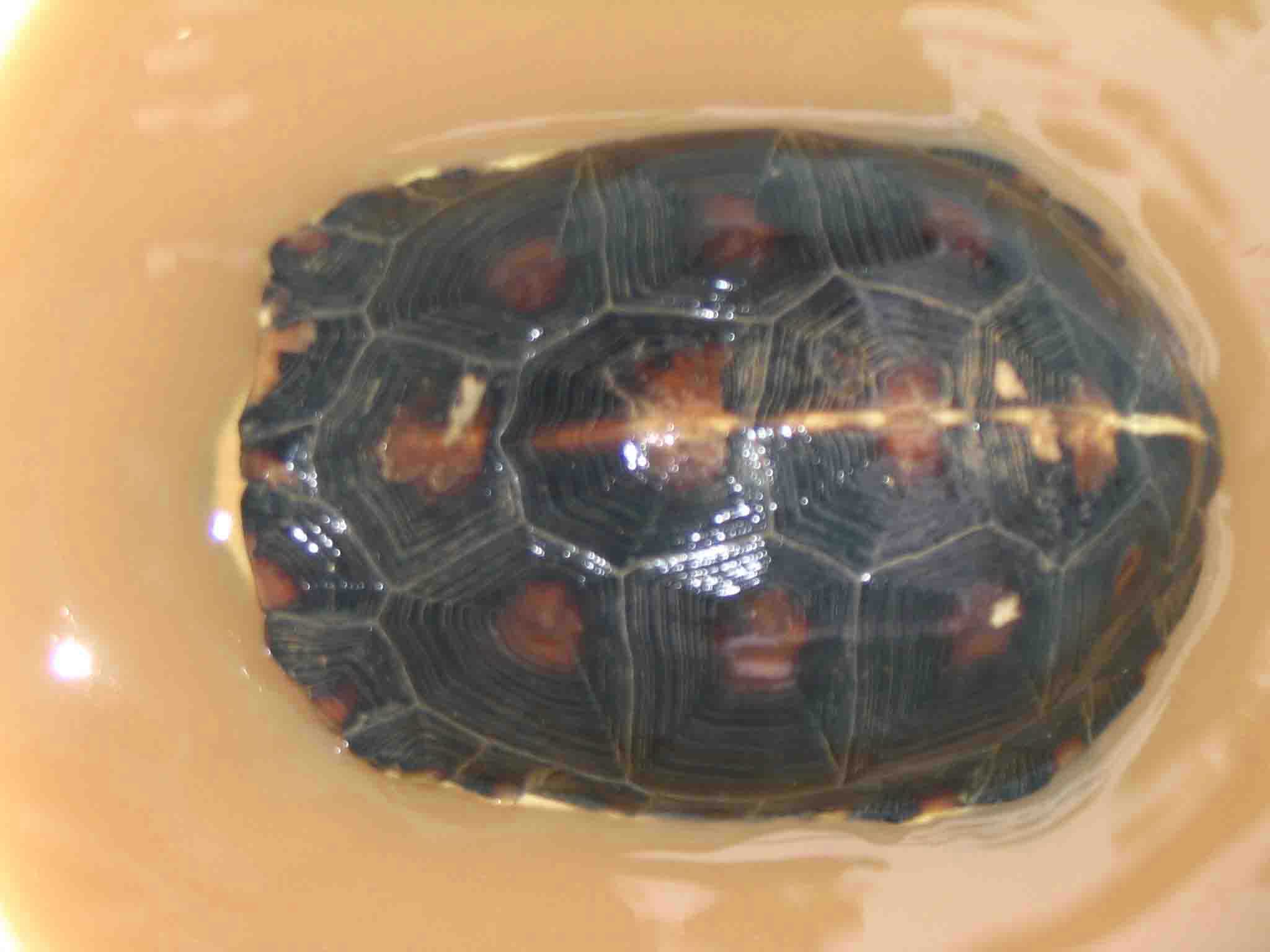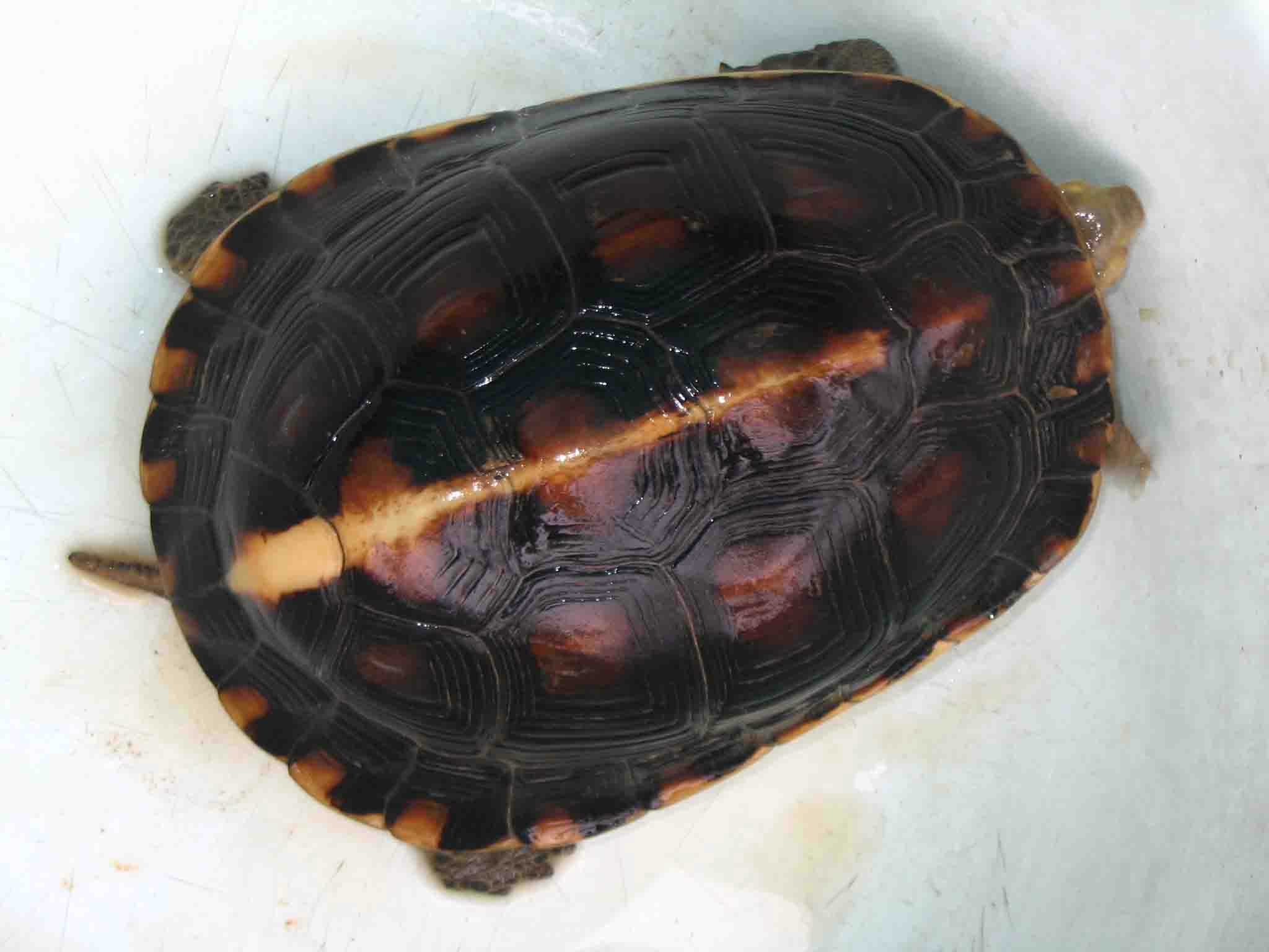 第五个:母龟,这个应当是品相最好的了,但是很害羞,你看,到现在还是闭壳的,老是爱发出打喷嚏的声音;有耐心的龟友做观赏还是可以的,在福州龟友梦在何方哪里