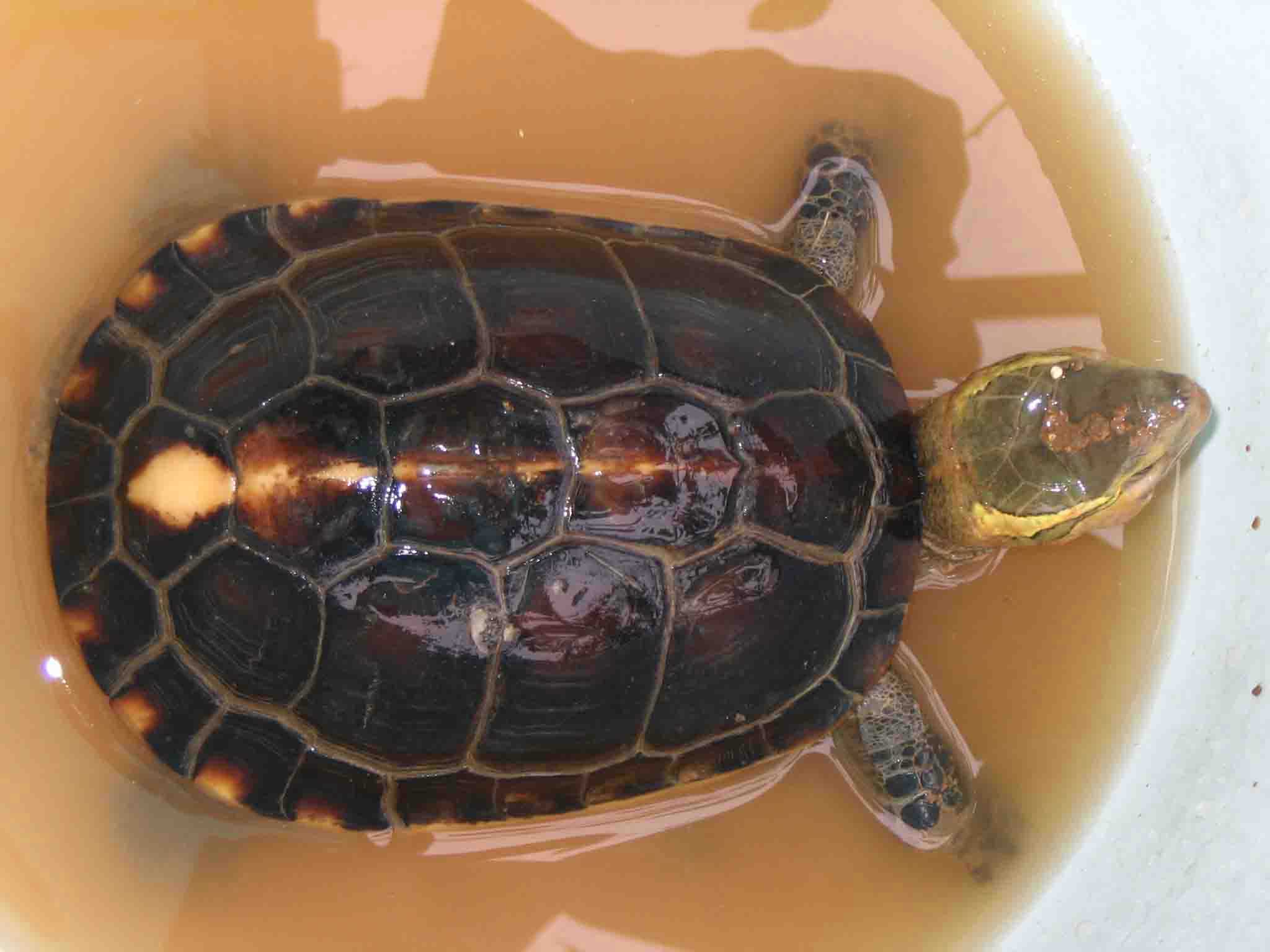 第三个:母龟,这个本来是相当好的,但是颈盾后面有一道相当深的伤,估计难好;