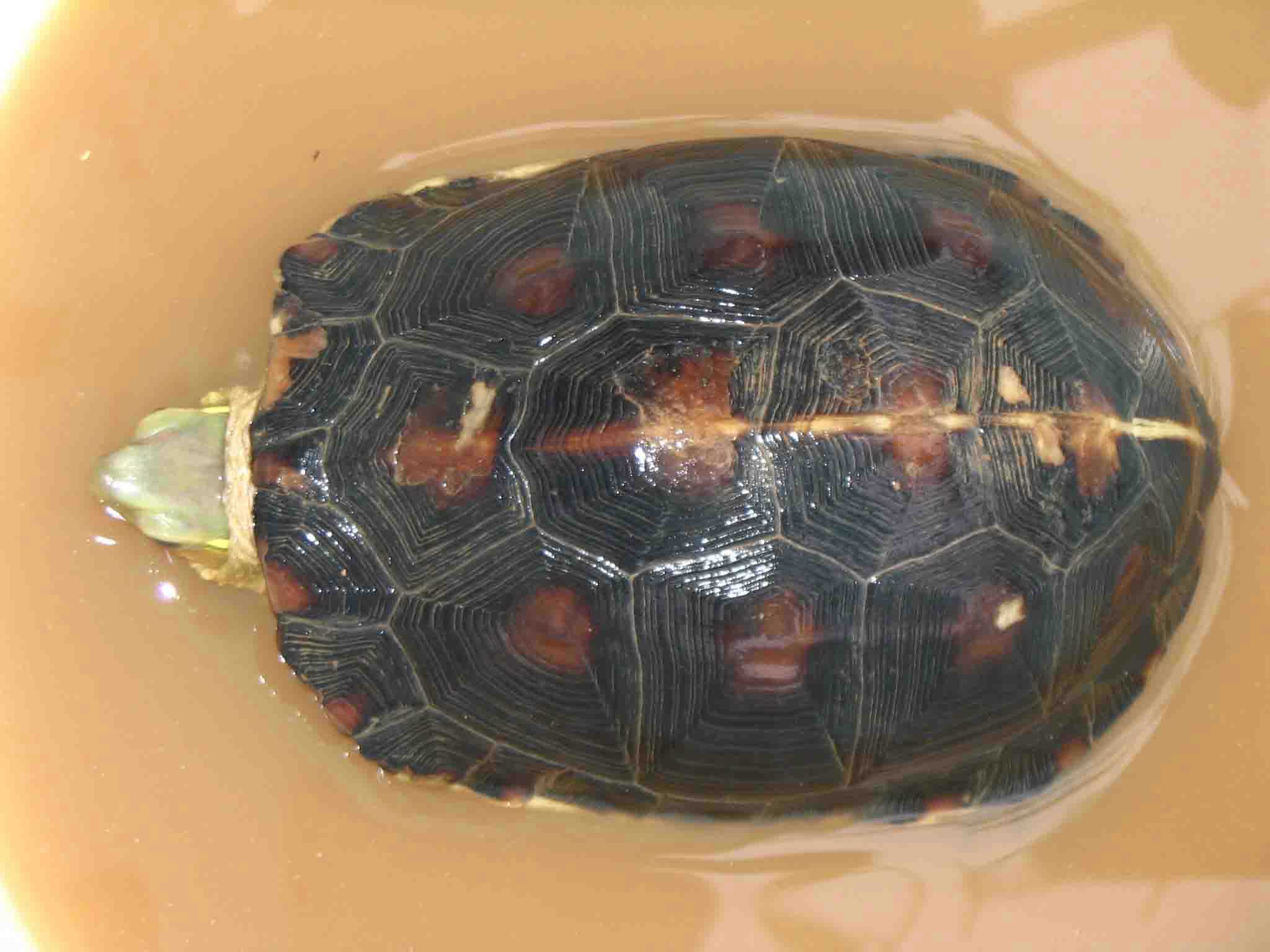 第八个:公的,背甲三处伤,腹甲一个洞,老伤了,已经好了