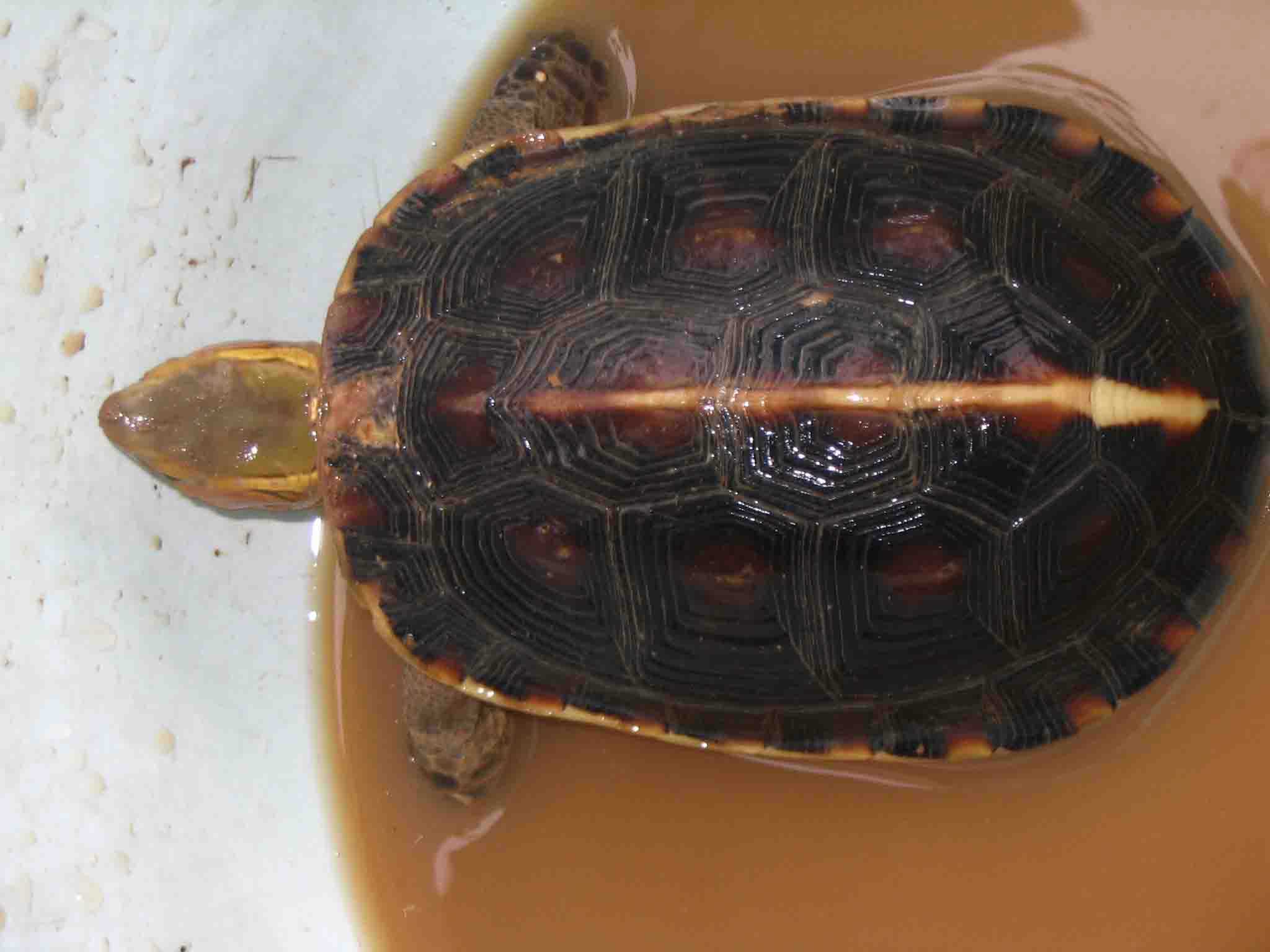 第一个:老公龟,估计年龄不小,年轮都磨没了;头特别大,体重最重,约为1、5斤,估计今后交配就看他了。背甲一处伤,指甲都有点磨损了;状态好,昨天晚上已经吃了蚯蚓