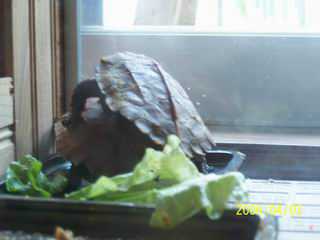 我结婚时为了有个纪念,在旧的花鸟市场买了两只枫叶(包括上面那只公的,母的大概2个月挂了),那时我不知枫叶是否好养,后来很多资料说不好养,可那只公的确实好养,去年在新花鸟市场又买了只母的(图上的)和他配对,母的回来时没注意看,鼻子缺了点,刚开始也担心挂掉(她不爱吃)后来发现她喜欢非常活跃的食物,就拿面包虫在她嘴边磨蹭,弄她张嘴,往她嘴里塞她就会咬,就此开食,他们两只这几天两天各喂一条大蚯蚓.