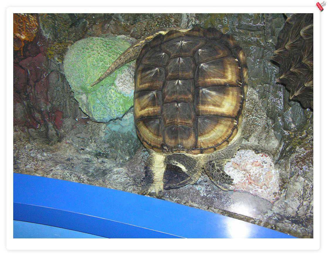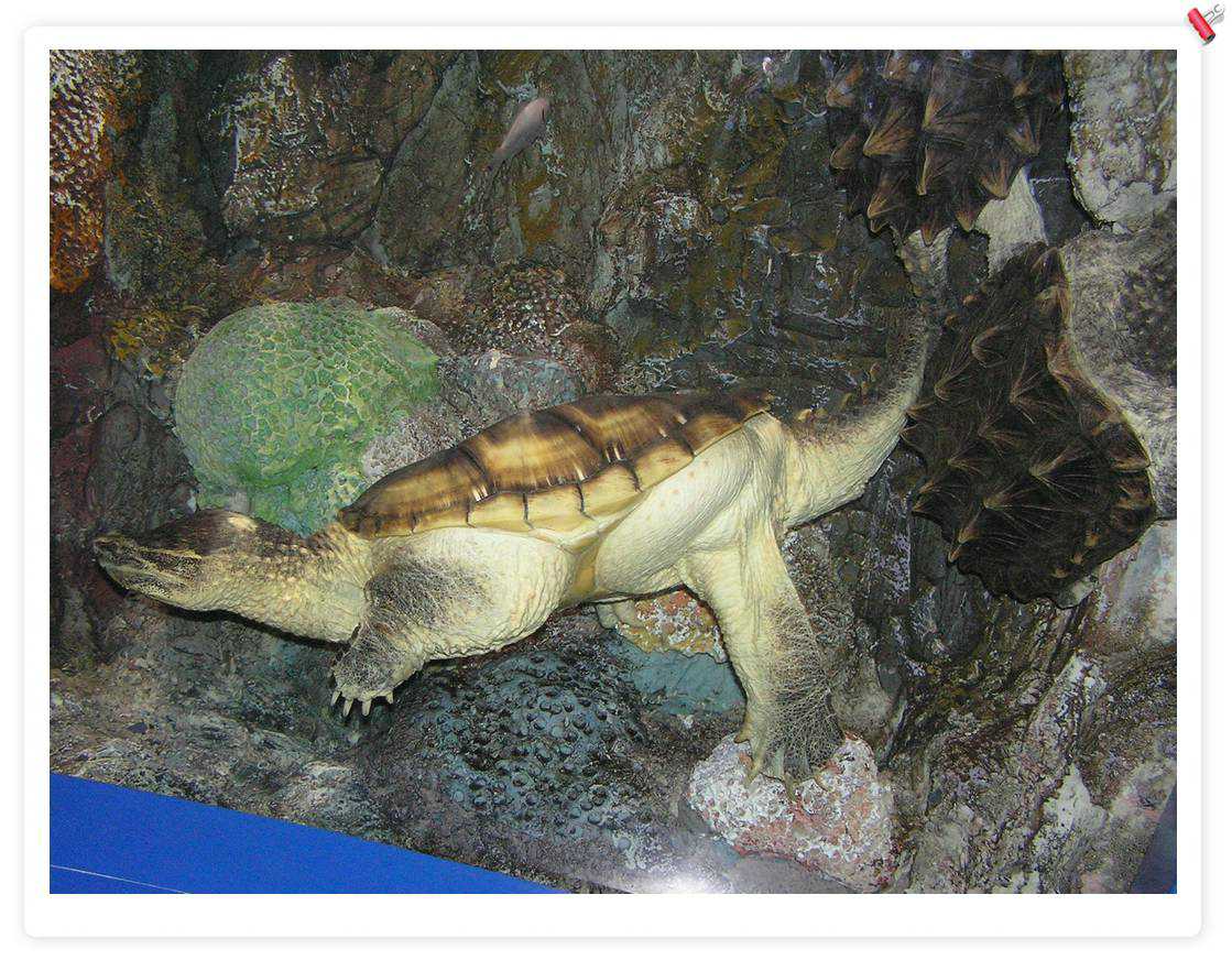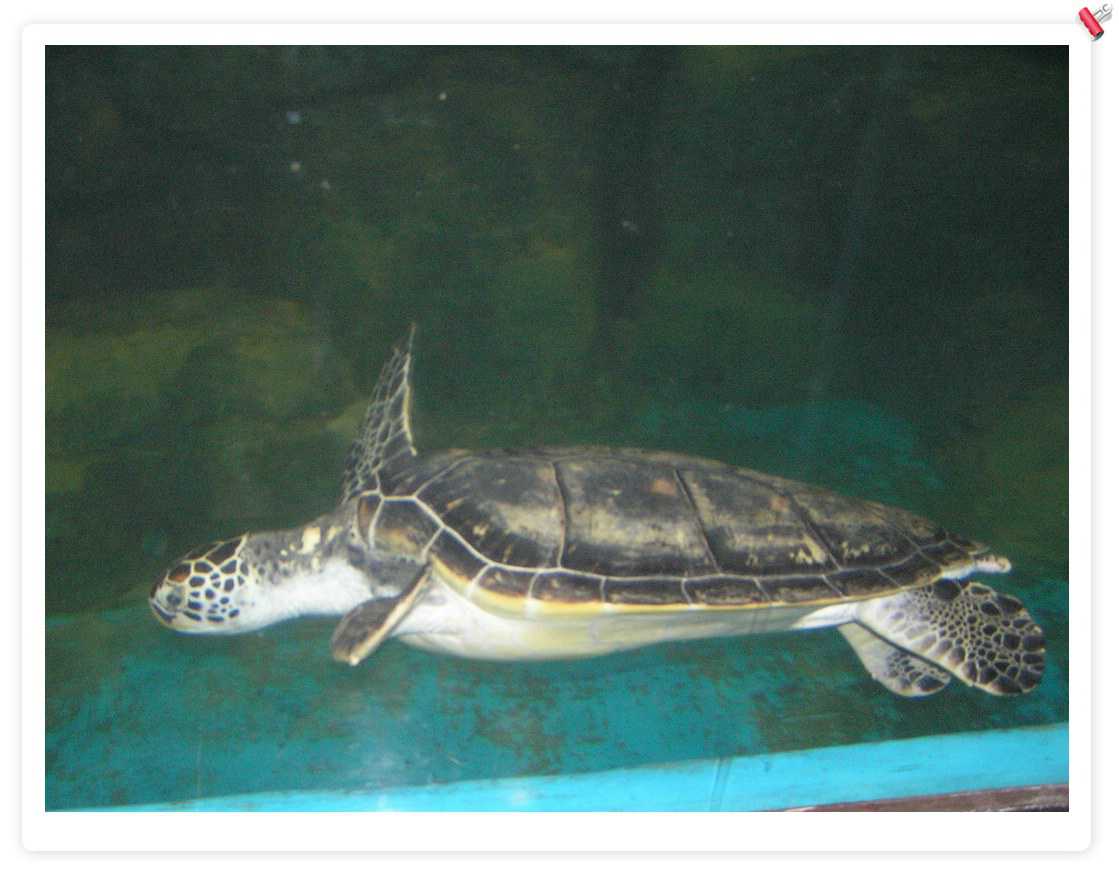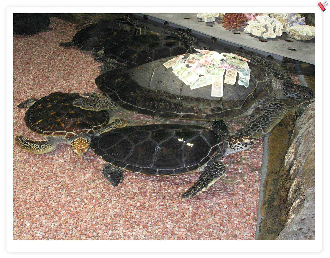 大海龟,不错,后来在一个海鲜店里看到养了1个,住在1立方米的缸里,只可以上下游动,缸上贴着:宠物龟