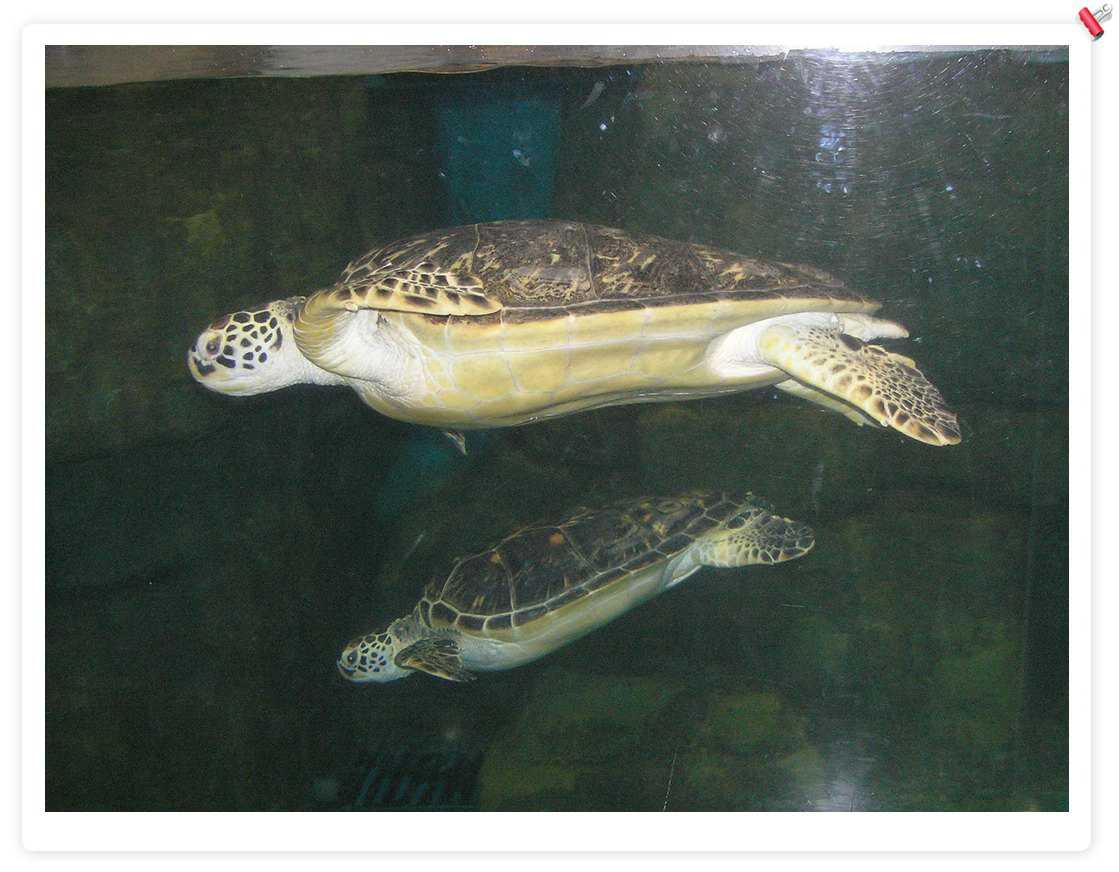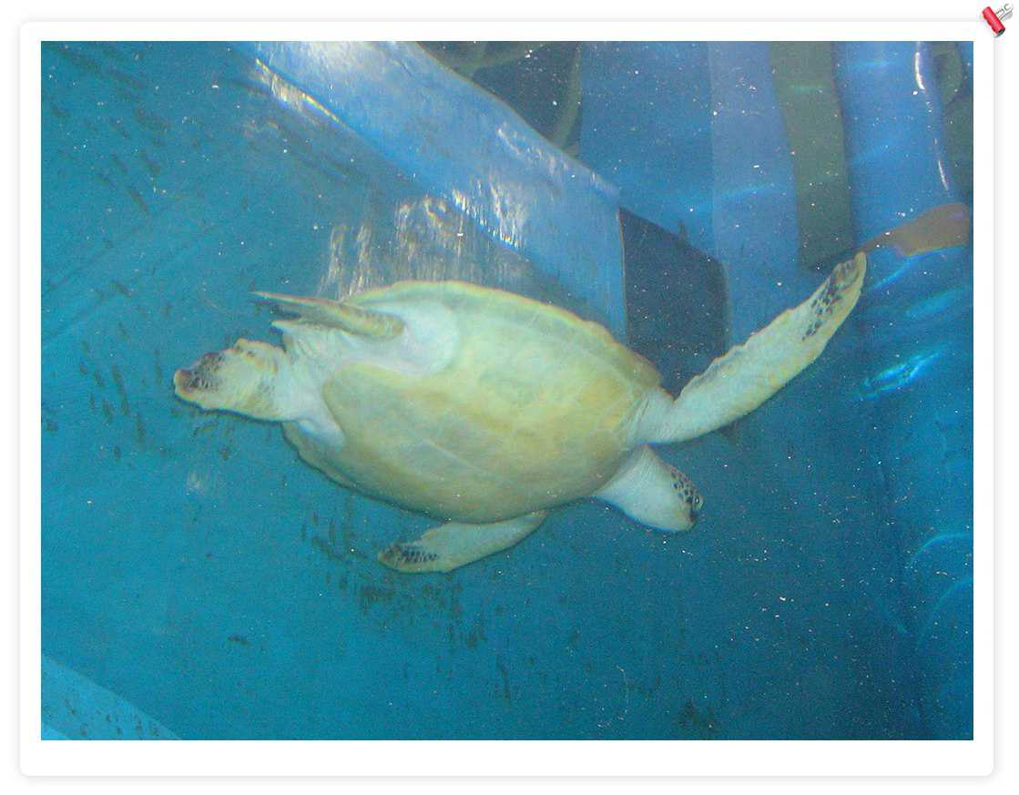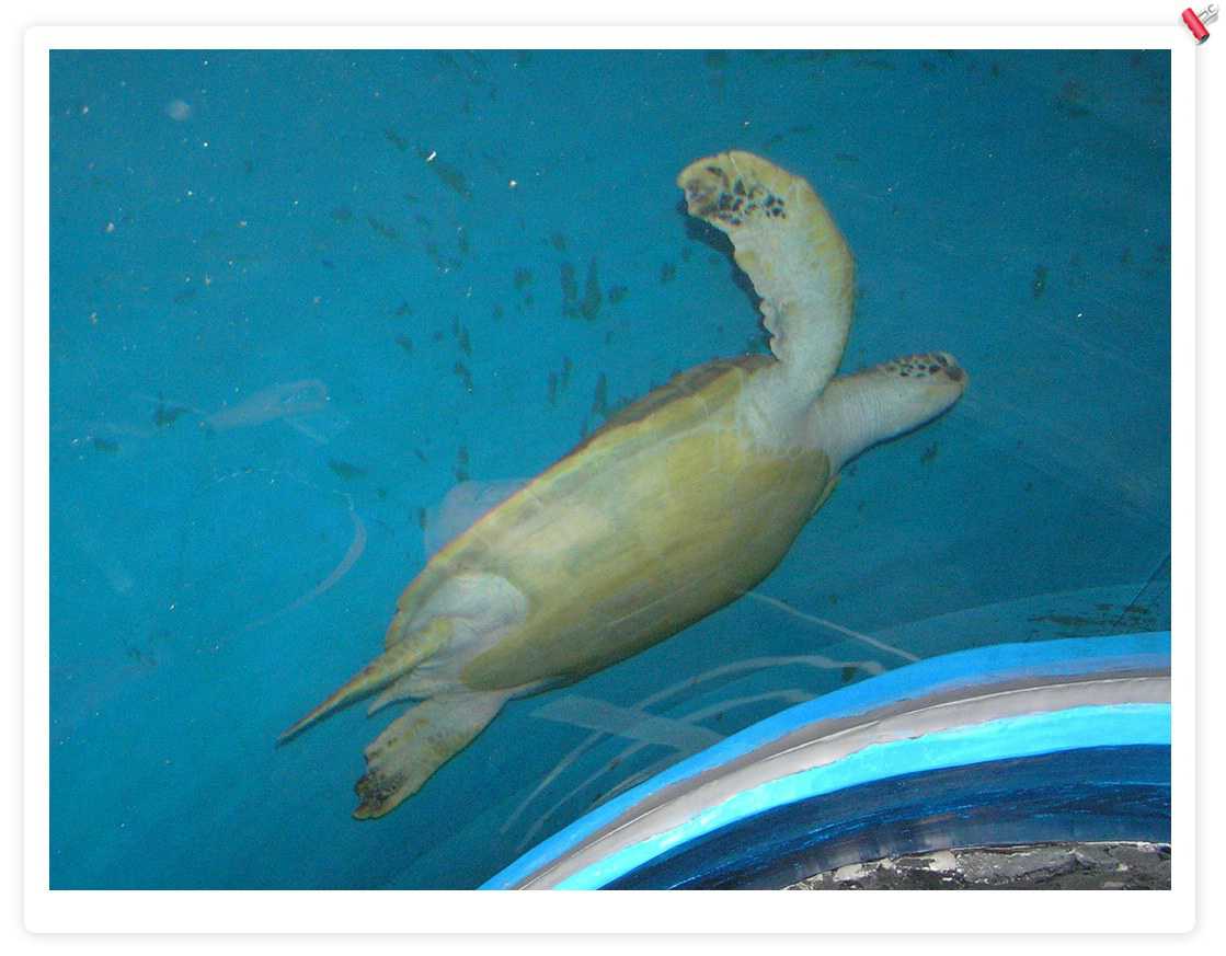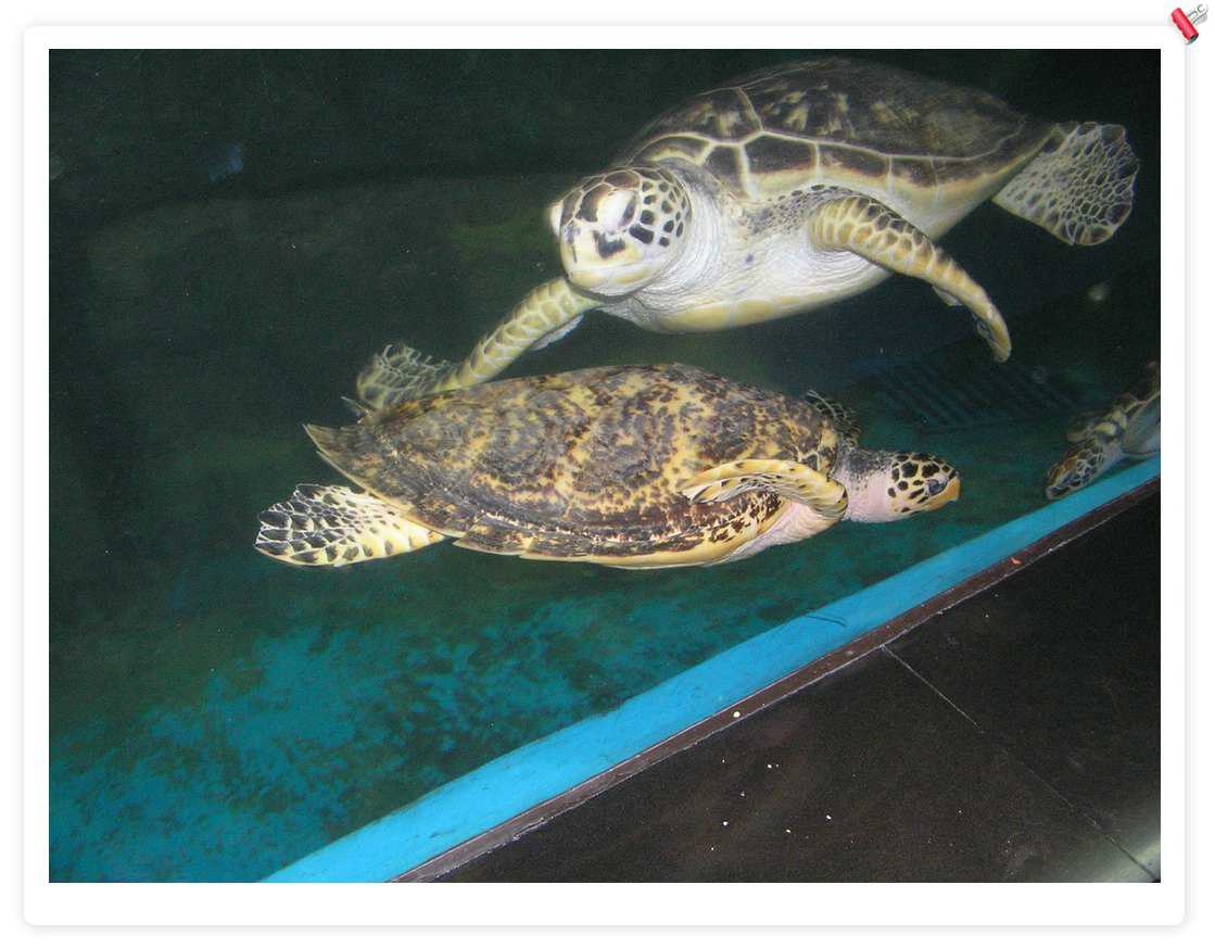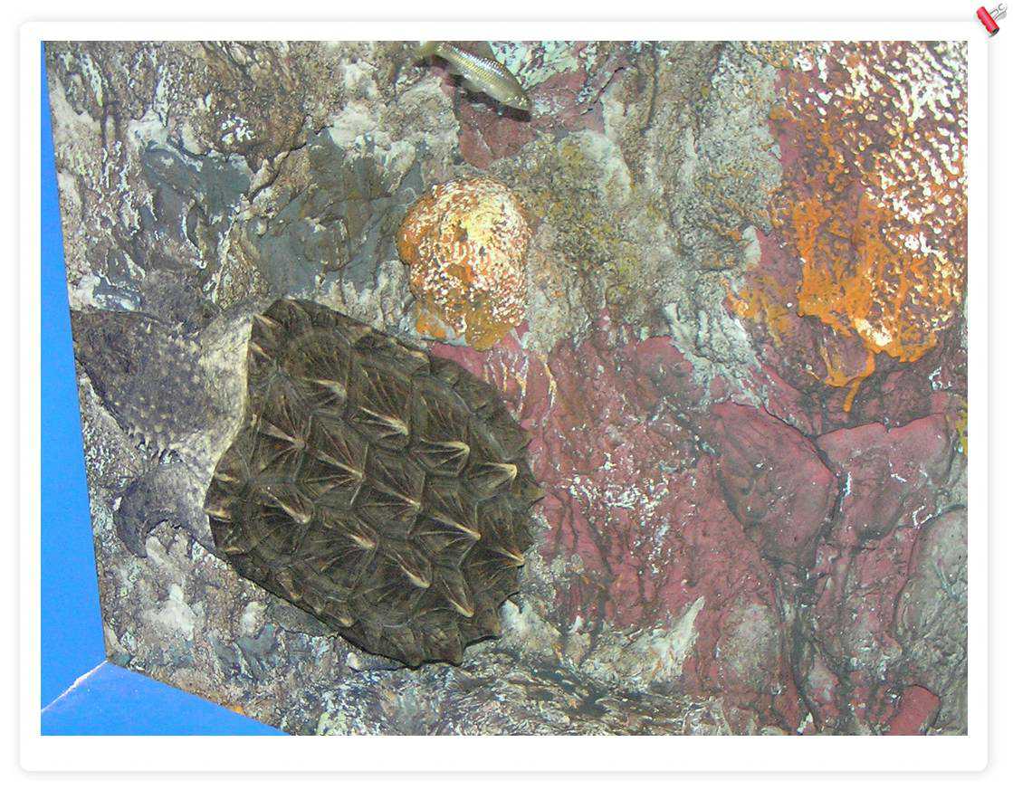 大海龟,不错,后来在一个海鲜店里看到养了1个,住在1立方米的缸里,只可以上下游动,缸上贴着:宠物龟