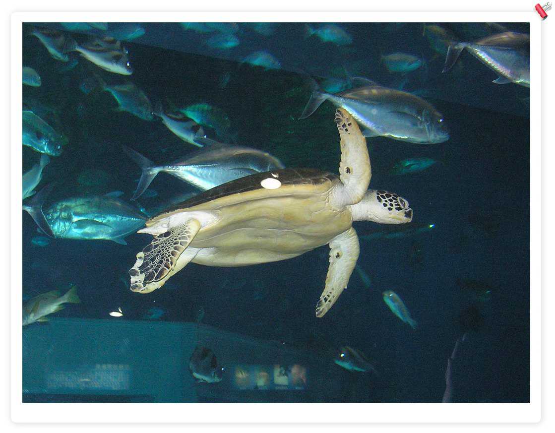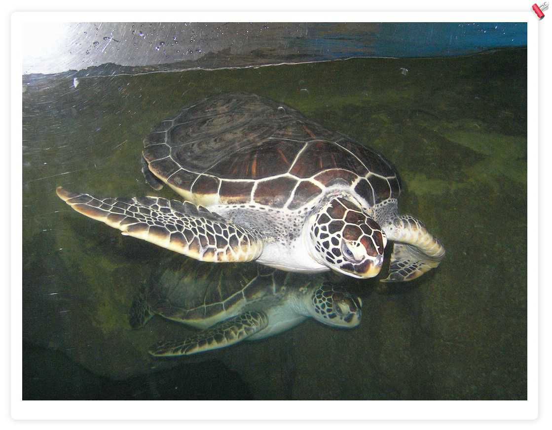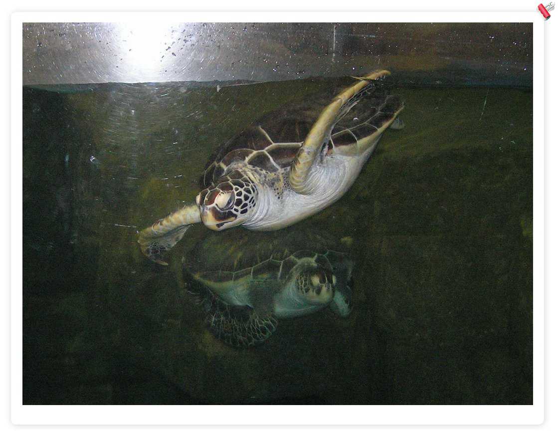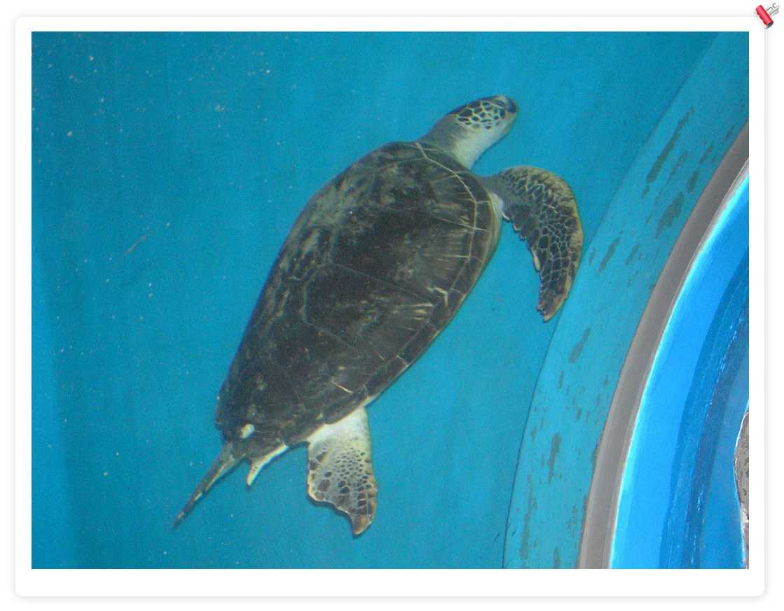 大海龟,不错,后来在一个海鲜店里看到养了1个,住在1立方米的缸里,只可以上下游动,缸上贴着:宠物龟