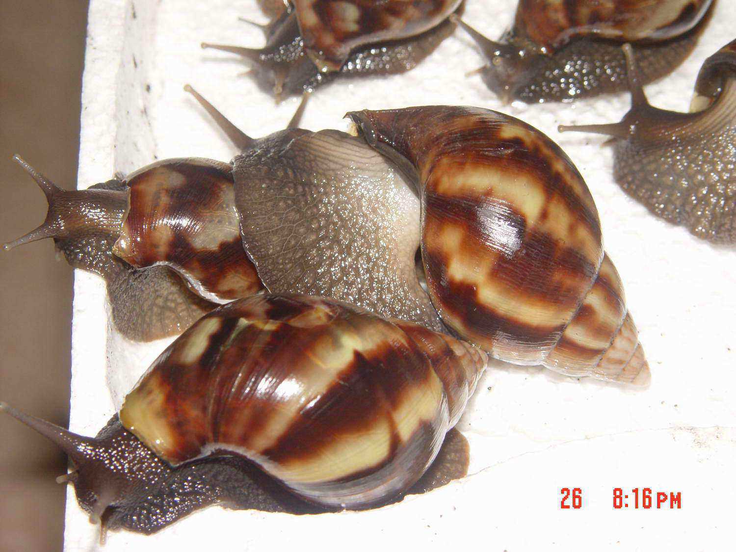玛瑙蜗牛,吃的时候可能要敲碎。