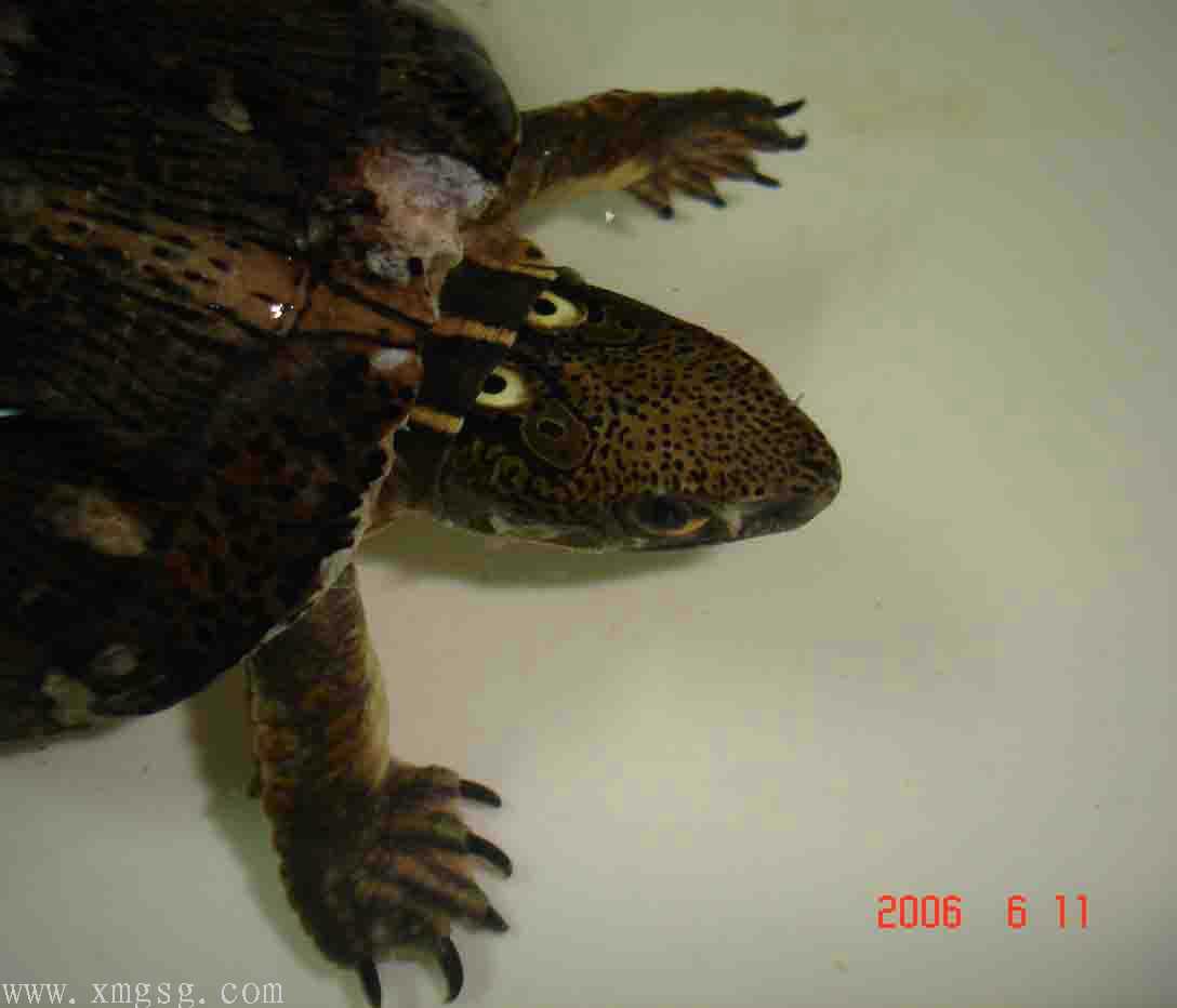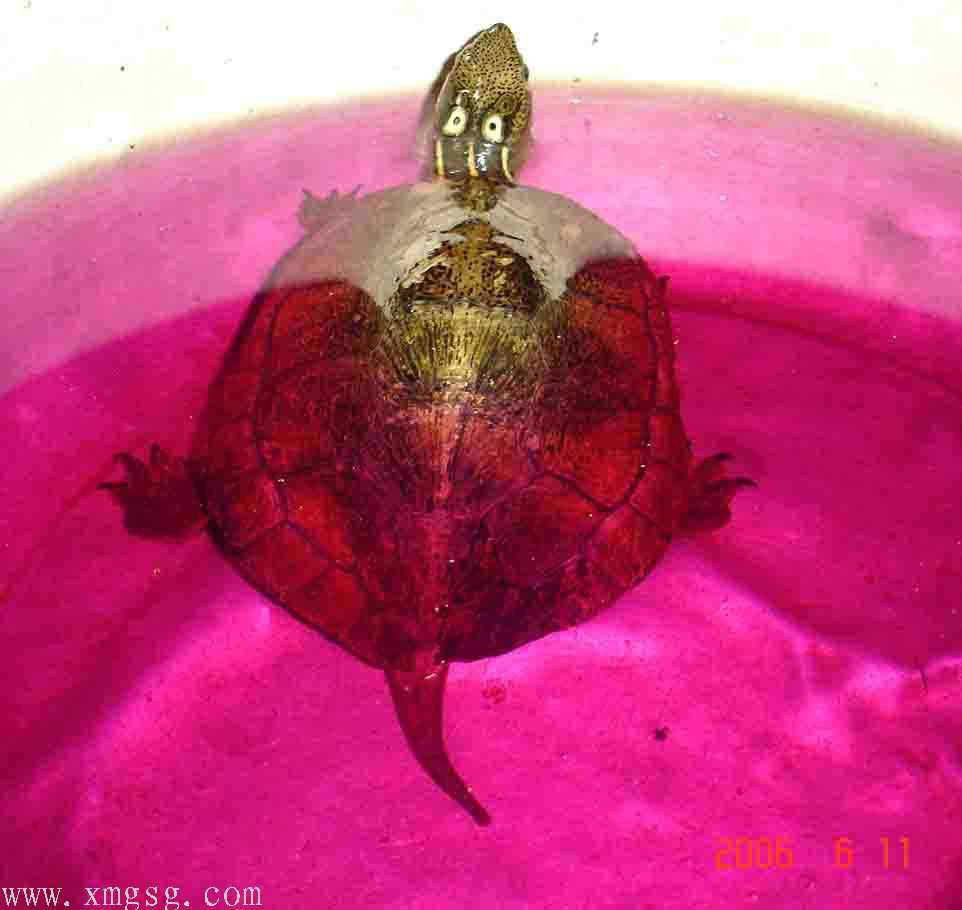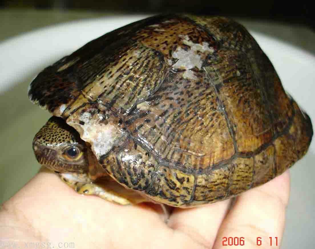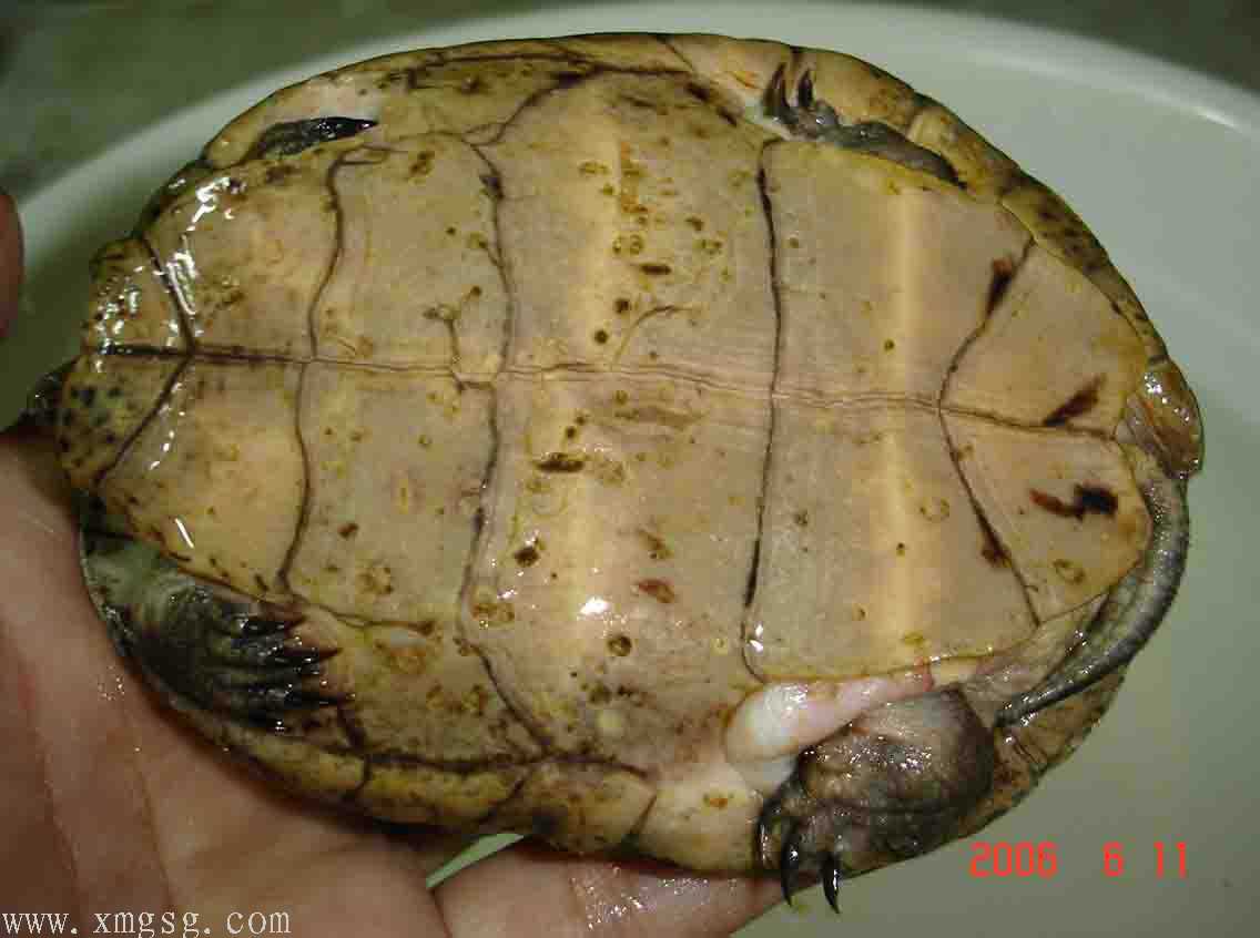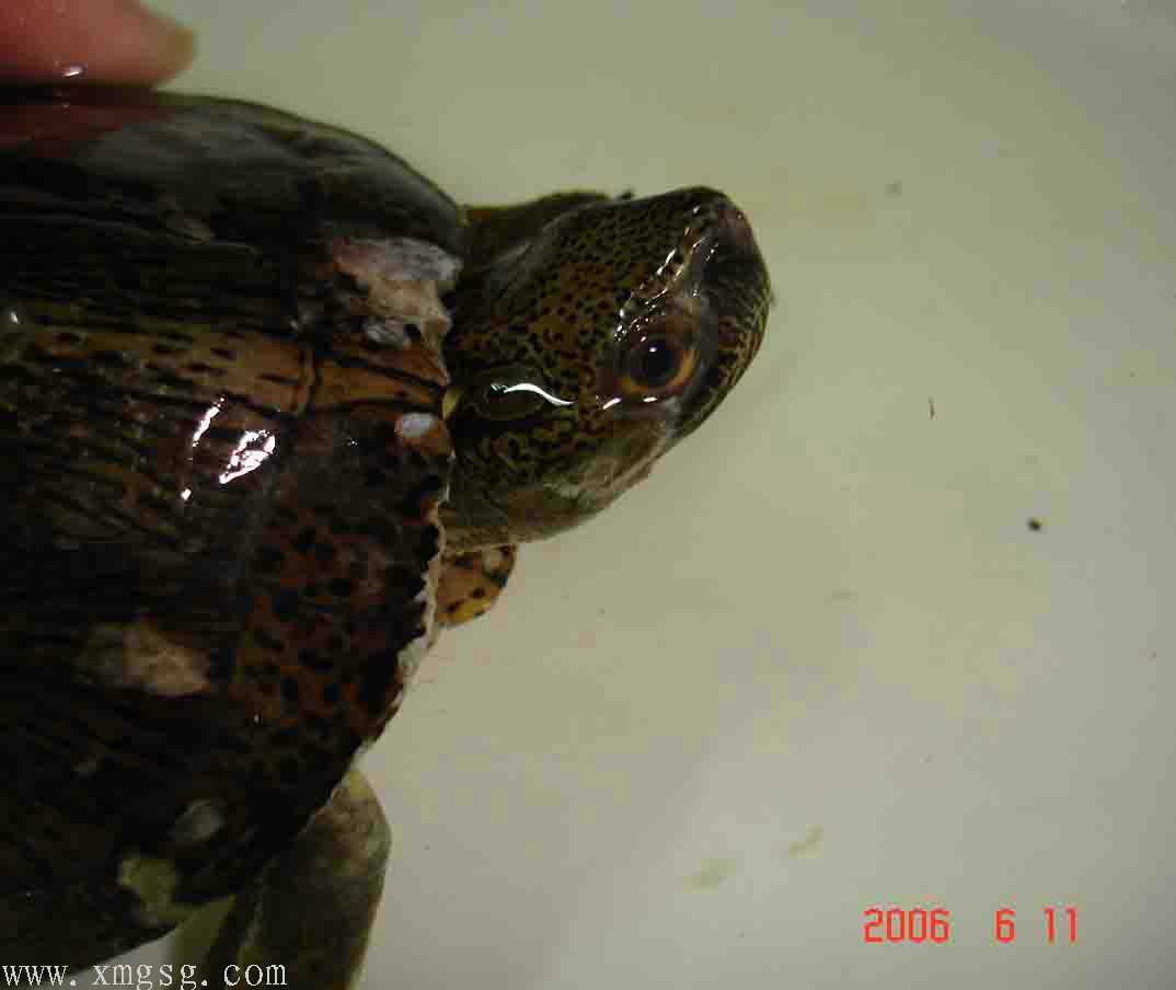 抓起龟上下打量一番(当然素斑了),发现身上伤口不少,但状态尚可。于是有了恻隐之心,眼角偷偷瞄了下LD,目光如炬啊!!!怕怕…但抱着龟仍爱不释手……接着试探性的问了贩子龟的价格(其实是2个20出头的农民工),对方答:“大的20,小的15。”“虾米!?15!!!”哈哈,心中一顿窃喜!继续抱着龟上下打量,究竟素眼斑还素四眼?经过来回观察约3分钟龟的外表,判断素条眼斑,于是边看着LD面部表情边伸手掏腰包,发觉LD脸色米有变化。喜悦之色涌上于眉梢:此事可成,此事可成也~[em09]
